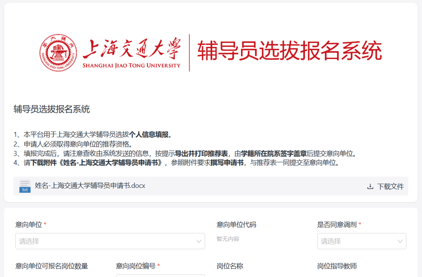 1. 申请人可在4月28日12:00后通过以下链接查询本次选拔开放的辅导员岗位信息,并选择船建学院所设岗位进行申请。